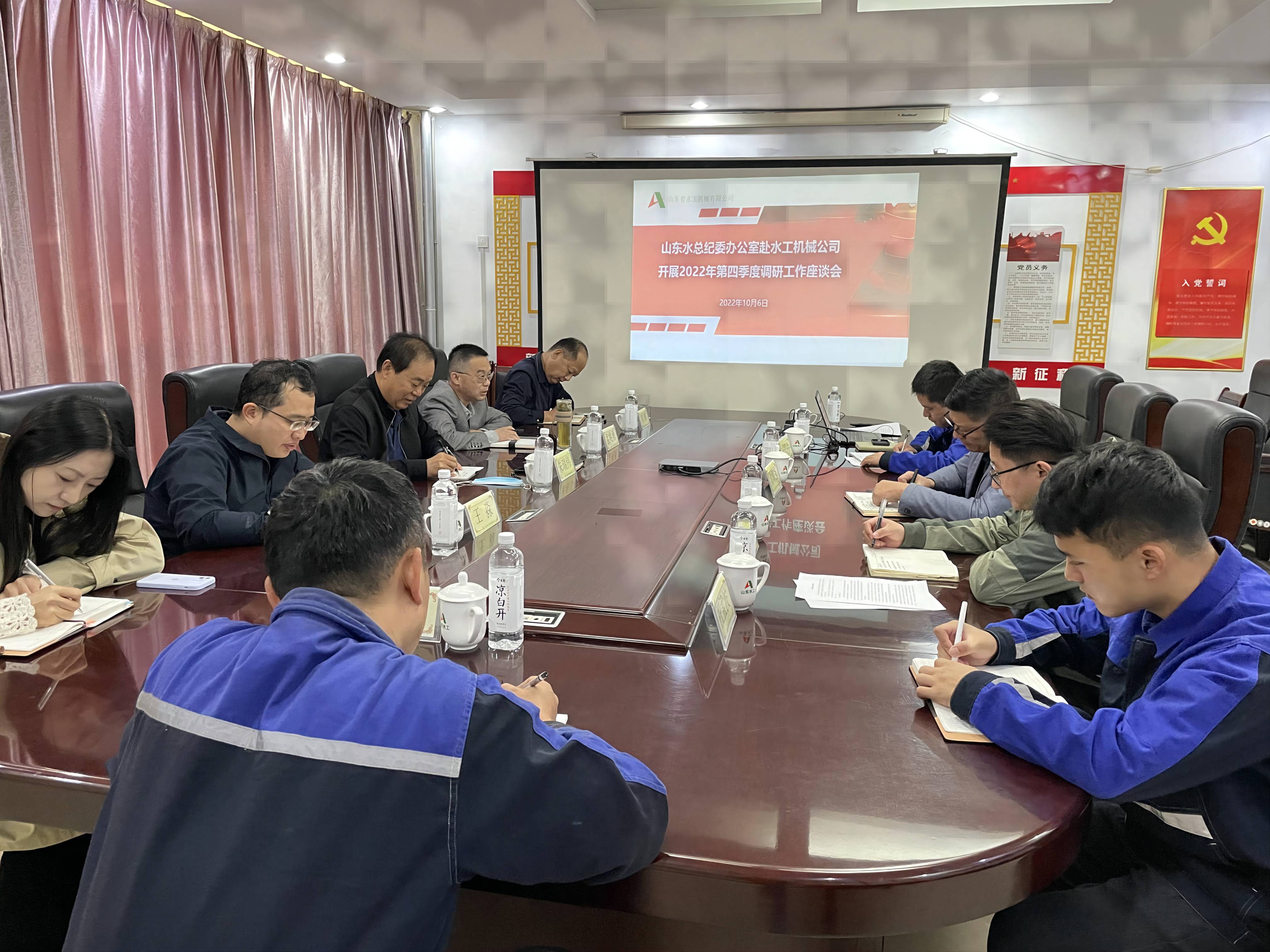 10月5日,调研组首先在水工机械公司三楼召开座谈会,听取水工机械公司机料采购、废料处理、成本控制等情况汇报,以及公司在各项工作中遇到的难题及下一步工作措施,对有关问题给予现场指导。调研组指出,公司目前各项任务还十分艰巨,面对错综复杂的形势和艰巨繁重任务,要深入贯彻上级党委的总体要求,坚决落实乐竞(中国)的各项决策部署,动员全体干部职工,积极应对安全环保、生产经营、产品质量“三重”大战大考,坚定信心、攻坚克难、苦干实干。随后,调研组一行实地查看生产车间,了解项目进展,认真检查现场安全生产落实情况,听取职工诉求和意见建议。