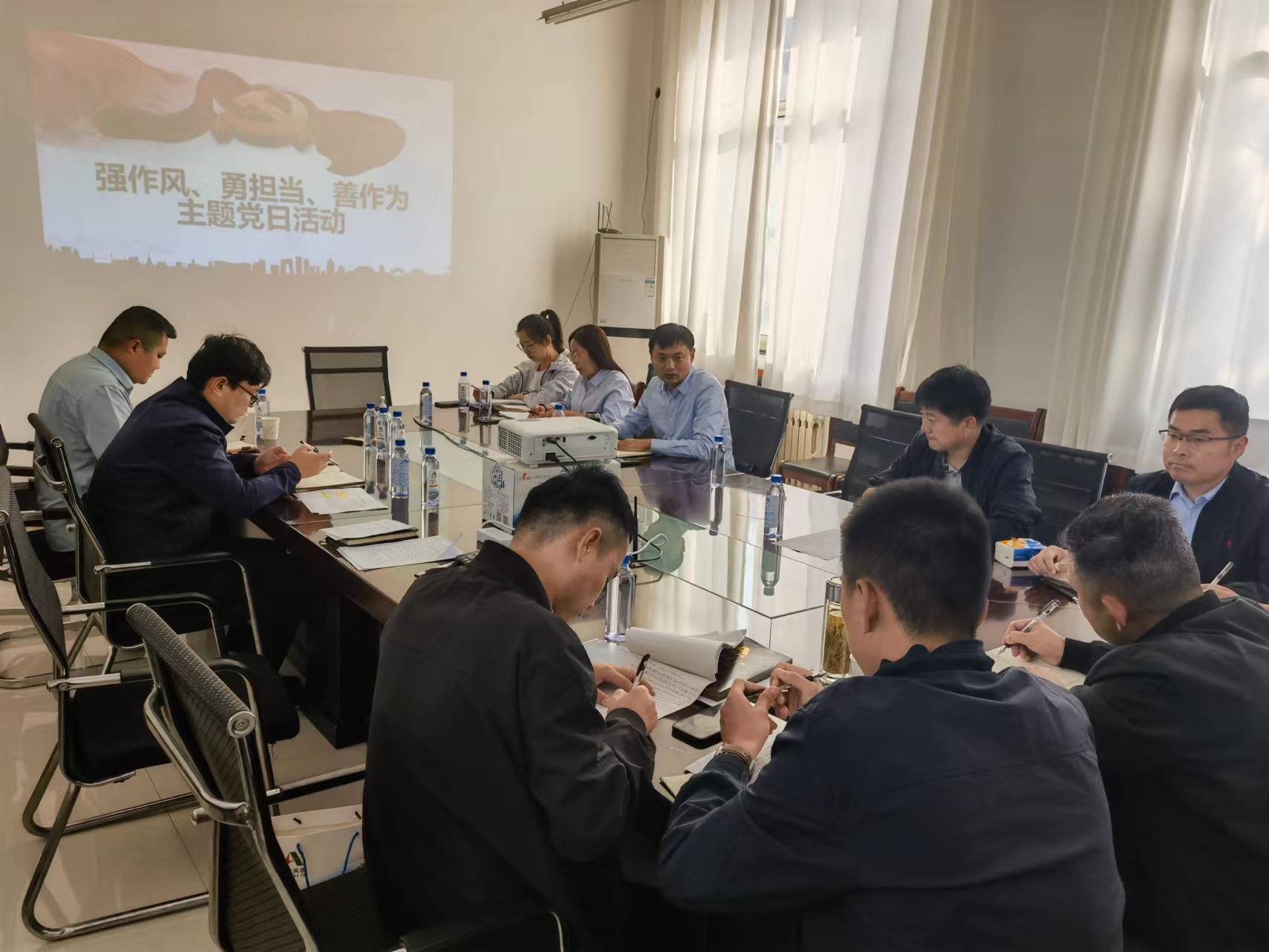 10月16日下午,第三分公司党支部在平邑县兴水河项目部开展“强作风 勇担当 善作为”主题党日活动,活动由支部书记徐浩主持,全体党员、入党积极分子、各项目负责人参加。