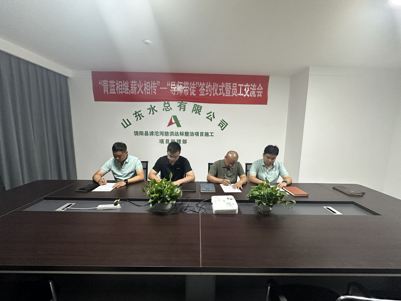 为帮助新入职员工快速转变角色,更好地立足岗位实现自我价值,近日,由第二分公司党支部牵头,在饶阳县滹沱河防洪达标整治施工项目经理部组织开展“导师带徒”签约仪式暨员工交流会。