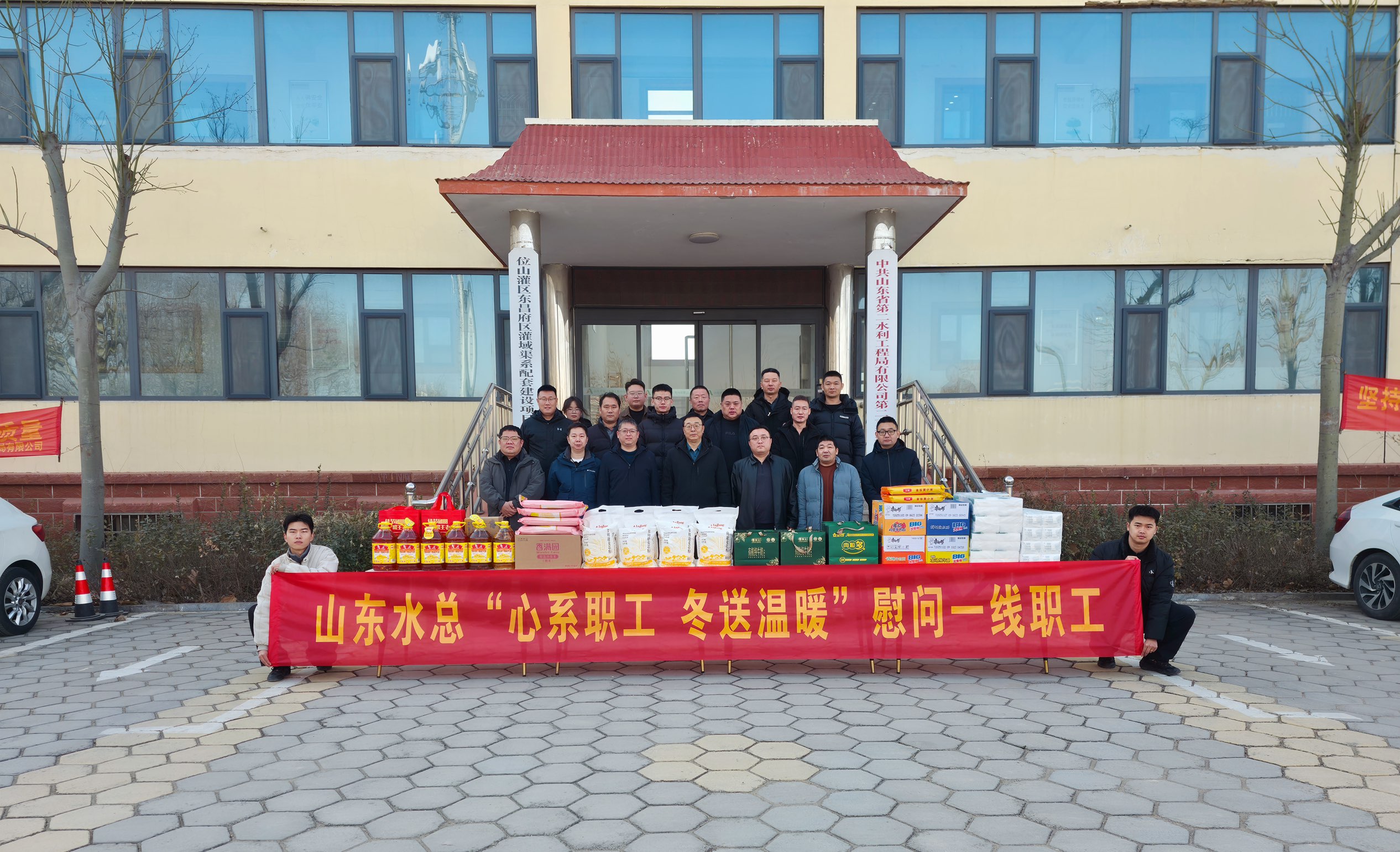 1月13日,公司总会计师杨利军带队前往二局有限公司聊城位山灌区工程项目现场,开展“心系职工 冬送温暖”慰问一线职工活动,为坚守在严寒一线的职工送去慰问品及公司的深切关怀与新年祝福。